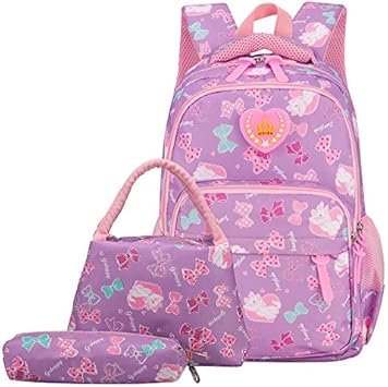 Juego De Mochilas Para Escuela Primaria Bowknot Para Ninas Con Bolsa De Almuerzo Juegos De Estuches De Lapices Con Mochila Escolar De 3piezas Amazon Es Equipaje