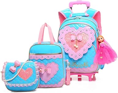 Zhuhaitf Tres Piezas Linda Estilo Princesa Mochilas Con Ruedas Mochila Rodante Para Ninas Para La Escuela Ligero Impermeable Amazon Es Ropa Y Accesorios