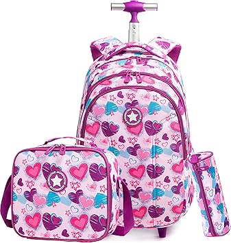 Amazon Com Mochilas Para Ninas Con Ruedas Para Ninas Para La Escuela Con Ruedas De Viaje Con Caja De Almuerzo