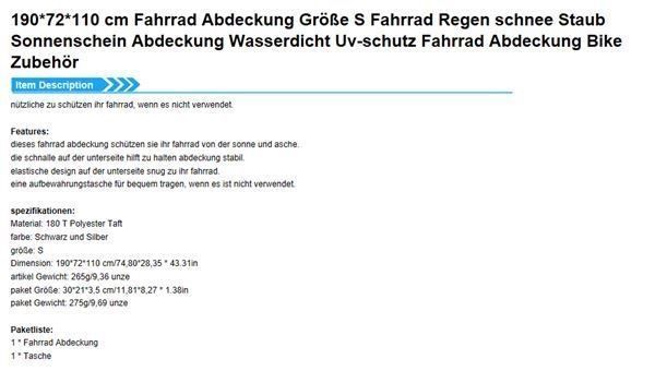 Fahrradabdeckung Fahrrad Regenschutz 210d Oxford Real De